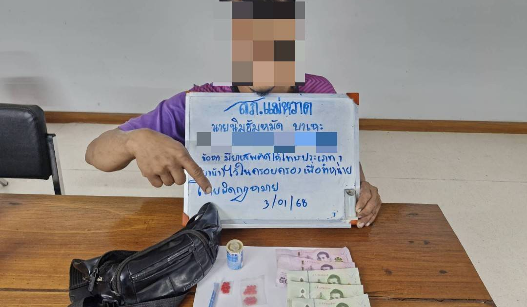 วันที่ 3 ม.ค.68 เวลา 17.00น. ภายใต้การอำนวยการของ พ.ต.ท.ธัญ ศิริขันธ์ สวญ.สภ.แม่หวาด (สั่งกาให้)ร.ต.อ.พีรพล ศาลาผาย รอง สวป.สภ.แม่หวาด (หัวหน้าชุดจับกุม) พร้อมชุดสืบสวน สภ.แม่หวาดได้ร่วมกันจับกุมผู้ต้องหา โดยกล่าวหาว่า. จำหน่ายยาเสพติดให้โทษประเภทที่ 1 (เมทแอมเฟตามีนหรือยาบ้า) โดยการมีไว้เพื่อจำหน่ายโดยไม่ได้รับอนุญาต และเสพยาเสพติดให้โทษประเภทที่ 1 (เมทแอมเฟตามีนหรือยาบ้า) โดยไม่ได้รับอนุญาต พร้อมด้วยของกลางคือ ของกลางที่ 1.ยาเสพติดให้โทษประเภท 1 (เมทแอมเฟตามีนหรือยาบ้า) ลักษณะเม็ดสีแดง ประทับอักษรดับบลิว-วาย (WY) หนึ่งด้าน อีกด้านผิวเรียบ จำนวน 20 เม็ด บรรจุอยู่ในถุงพลาสติกสีใส ของกลางที่ 2.ยาเสพติดให้โทษประเภท 1 (เมทแอมเฟตามีนหรือยาบ้า) ลักษณะเม็ดสีแดงประทับอักษรดับบลิว-วาย (WY) หนึ่งด้าน อีกด้านผิวเรียบ จำนวน 13 เม็ด บรรจุอยู่ในหลอดพลาสติกสีฟ้าแถบสีขาว ของกลางที่ 3.ยาเสพติดให้โทษประเภท 1 (เมทแอมเฟตามีนหรือยาบ้า) ลักษณะเม็ดสีแดงประทับอักษรดับบลิว-วาย (WY) หนึ่งด้าน อีกด้านผิวเรียบ จำนวน 9 เม็ด บรรจุอยู่ในถุงพลาสติกสีใส ลนด้วยความร้อนปิดหัวท้าย รวมยาบ้าทั้งหมด จำนวน 42 เม็ด น้ำหนักรวมหีบห่อบรรจุประมาณ 5.36 กรัมของกลางที่ 4.กระเป๋าคาดอกหนังสีดำ จำนวน 1 ใบ ของกลางที่ 5.กระปุกยาพลาสติก allergin จำนวน ๑ กระปุกของกลางที่ 6.ธนบัตรฉบับละ 500 จำนวน 2 ใบและธนบัตรฉบับละ 20 บาท จำนวน 3 ฉบับ รวมจำนวนเงิน ทั้งหมด เป็น 1060 บาท โดยใช้อำนาจบัตรเจ้าพนักงานป้องกันและปราบปรามยาเสพติดของ ร.ต.อ.พีรพล ศาลาผาย รอง สวป.สภ.แม่หวาด จากนั้นจึงทำการจัดเก็บ DNA และนำตัว ผตห. ส่ง พงส. สภ.แม่หวาด