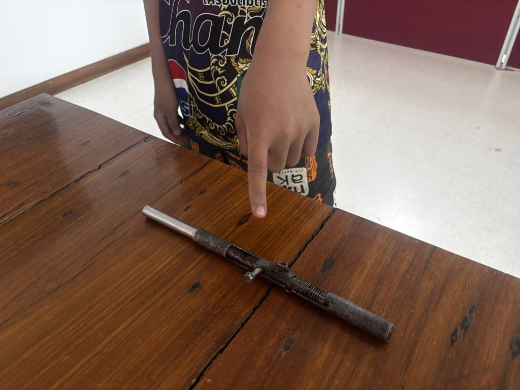จับกุมอาวุธปืน 1 กุมภาพันธ์ 2568 โดย admin / ผลการปฏิบัติ,ป้องกันปราบปราม,มกราคม งาน ปป.,ผลการปฏิบัติ,สืบสวน,มกราคม งานสืบ วันที่ 31 ม.ค. 68 เวลาประมาณ 16.30 น. ภายใต้การอำนวยการสั่งการของ พ.ต.ท.ธัญ ศิริขันธ์ สวญ.สภ.แม่หวาด, พ.ต.ท.เอกพงษ์ เกิดไกรแก้ว สวป.สภ.แม่หงาด (สั่งการให้) จ.ส.ต.จักรพงศ์ โตนวุธ ผบ.หมู่ (นปพ.) สภ.แม่หวาด (ร้อยเวร 20) (หัวหน้าชุดจับกุม) พร้อมชุดสายตรวจบินหลา สภ.แม่หวาด ได้ร่วมกันจับกุมผู้ต้องหา โดยกล่าวหาว่า มีอาวุธปืนไว้ในครอบครองโดยไม่ได้รับอนุญาต พร้อมด้วยของกลางคือ อาวุธปืนไทยประดิษฐ์ (อาวุธปืนปากกา) จำนวน 1 กระบอก ลักษณะเป็นโลหะ ความยาวประมาณ 12 นิ้ว FacebookFacebookXXLINELine