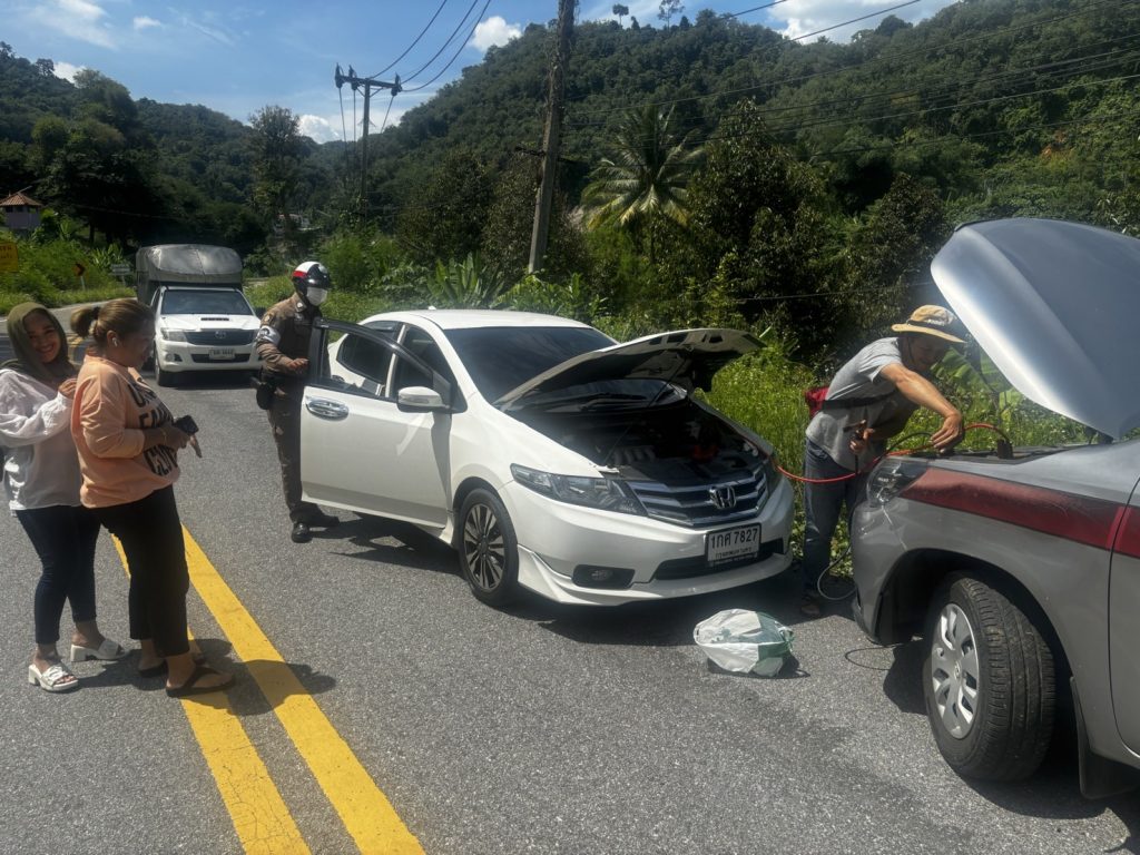 ช่วยเหลือประชาชน 8 สิงหาคม 2567 โดย admin / ข่าวประชาสัมพันธ์ นำโดย พ.ต.ท.ธัญ ศิริขันธ์ สวญ.สภ.แม่หวาด,พ.ต.ท.เอกพงษ์ เกิดไกรแก้ว สวป.สภ.แม่หวาด,ข่ายจราจร สภ.แม่หวาด ได้เข้าช่วยเหลือรถยนต์แบตเตอรี่หมด บริเวณถนนสาย 410 ข้างโรงเรียนบ้านโต จึงดำเนินการช่วยเหลือพ่วงแบตเตอรี่ จนสามารถเดินทางต่อไปได้ FacebookFacebookXXLINELine