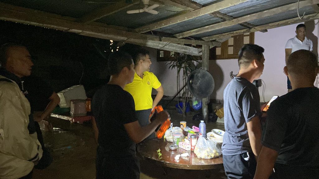 ช่วยเหลือผู้ประสบภัยน้ำท่วมฉับพลัน 12 ตุลาคม 2567 โดย admin / ข่าวประชาสัมพันธ์ นำโดย พ.ต.ท.ธัญ ศิริขันธ์ สวญ. สภ.แม่หวาด,พ.ต.ท.เอกพงษ์ เกิดไกรแก้ว สวป. สภ.แม่หวาด,ร.ต.อ.ชนะกานต์ สังข์ทอง ผบ.มว(สบ๑)สภ.แม่หวาด (ร้อยเวร 20), ร.ต.อ.มนตรี เพชรนวลน้อย รอง สว.(สอบสวน )สภ.แม่หวาด (นายตำรวจเวรอำนวยการ) สายตรวจบินหลา,ข่ายจราจรและชป.เตรียมพร้อมที่ตั้ง ประจำ สภ. ได้เข้าช่วยเหลือผู้ประสบภัยจากอุทกภัยและอำนวยความสะดวกด้านการจราจรให้กับประชาชน ในพื้นที่ ม.7 ต.แม่หวาด อ.ธารโต จ.ยะลา FacebookFacebookXXLINELine
