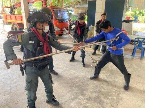 วันที่ 5 ก.พ.68 เวลา 14.30 น. นำโดย พ.ต.ท.เอกพงษ์ เกิดไกรแก้ว สวป.สภ.แม่หวาด รรท.สวญ.สภ.แม่หวาด และ ร.ต.อ.ชนะกานต์ สังข์ทอง ผบ.มว.(สบ๑)สภ.แม่หวาด (ร้อยเวร 20) พร้อมสายตรวจบินหลา ได้ออกทำการถ่ายทอดความรู้ยุทธวิธีตำรวจ การใช้และการระงับเหตุคนคลุ้มคลั่งโดยชุดไม้ง่าม ณ สถานีดับเพลิงคอกช้าง ม.7 ต.แม่หวาด ฯ โดยมุ่งหวังให้ เจ้าหน้าที่ได้มีทักษะ ความรู้ความชำนาญ ความเข้าใจ ในการใช้อุปกรณ์และการเข้าระงับเหตุดังกล่าว เมื่อมีเหตุการณ์ในพื้นที่ต่อไป