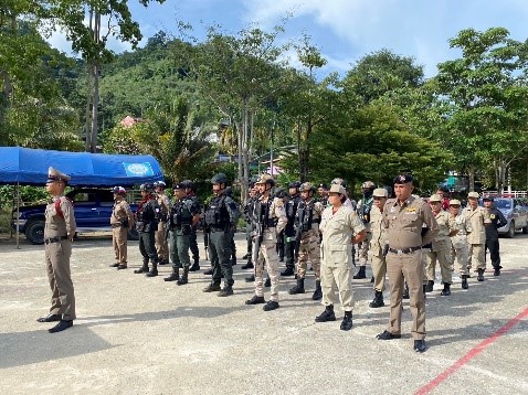 วันที่ 11 พ.ย. 67 เวลา 15.00 น. นำโดย พ.ต.ท.ธัญ ศิริขันธ์ สวญ. สภ.แม่หวาด มอบหมายให้ พ.ต.ท.เอกพงษ์ เกิดไกรแก้ว สวป. สภ.แม่หวาด,พ.ต.ท.ประสาทวิทย์ ดวงกมล สว.(สอบสวน)สภ.แม่หวาด, ร.ต.อ.สุริยา รัตนพล รอง สว.(สอบสวน)สภ.แม่หวาด,ร.ต.ต.ศรสิทธิ์ คชินทร รอง สว.(ป.)สภ.แม่หวาด พร้อมด้วยข้าราชการตำรวจ สภ.แม่หวาด ร่วมกับหน่วยกำลังในพื้นที่ เจ้าหน้าที่ฝ่ายปกครอง,เจ้าหน้าที่ มว.ฉก.ตชด.4433 และเจ้าหน้าที่ ชรบ.คอกช้าง ร่วมปล่อยแถวระดมกวาดล้างอาชญากรรมการรักษาความสงบเรียบร้อย ความปลอดภัยในชีวิตและทรัพย์สินของประชาชนและนักท่องเที่ยวในช่วงเทศกาลประเพณีลอยกระทง ประจำปี 2567 ระหว่างวันที่ 8 – 14 พ.ย.67 ณ สนามกีฬา โรงเรียนบ้านโต ต.แม่หวาด