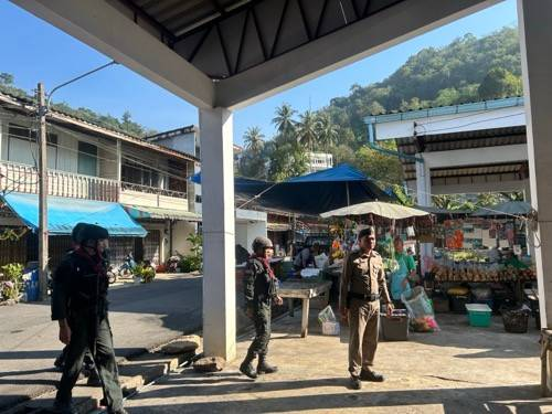 วันที่ 4 ก.พ. 68 เวลา 08.40 น. นำโดย พ.ต.ท.เอกพงษ์ เกิดไกรแก้ว สวป.สภ.แม่หวาด รรท.สวญ.สภ.แม่หวาด และ จ.ส.ต.อับดุลฮาเล็ม โตะเฮ็ะ ผบ.หมู่(ป.)สภ.แม่หวาด (ปฏิบัติหน้าที่ร้อยเวร 20) พร้อมสายตรวจบินหลา,ข่าย จร.ได้ออกทำการรักษาความปลอดภัย และตรวจเยี่ยมตลาดนัดคอกช้าง พร้อมได้ประชาสัมพันธ์แผนการป้องกันการก่อเหตุร้ายในพื้นที่ให้ช่วยกันเป็นหูเป็นตาบุคคลแปลกหน้าที่เข้ามาในพื้นที่กำชับให้เพิ่มความระมัดระวัง กลุ่มคนร้ายที่อาจจะเข้ามาก่อเหตุสร้างสถานการณ์ การสังเกตุรถที่จอดทิ้งไว้เวลานาน และหมั่นตรวจสอบวัตถุต้องสงสัยภายในบริเวณร้านค้า ซึ่งกลุ่มคนร้ายอาจจะเข้ามาลักลอบวางระเบิดเพลิงได้ พร้อมได้เน้นย้ำการประชาสัมพันธ์พ่อค้าและแม่ค้าในตลาดเรื่อง 18 กลโกงมิจฉาชีพใช้หลอกหลวงเหยื่อบนโลกทางออนไลน์ ให้ประชาชนได้รู้เท่าทันภัยดังกล่าว