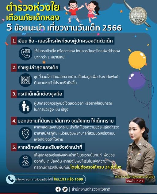 รองโฆษก ตร. ออกโรงเตือน พ่อแม่ผู้ปกครอง พึ่งระวังเด็กพลัดหลง ช่วงงานวันเด็ก แนะ 5 ข้อป้องกัน และพฤติกรรม Sharenting ของพ่อแม่ยุคใหม่