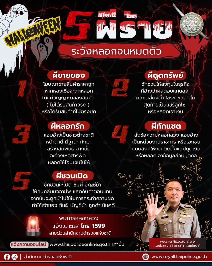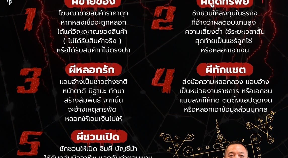 ขอเตือนระวังภัย 5 ผี มิจฉาชีพ ที่พี่น้องประชาชนต้องระวัง อย่าให้มาหลอกหลอน สร้างความเสียหายในสังคม