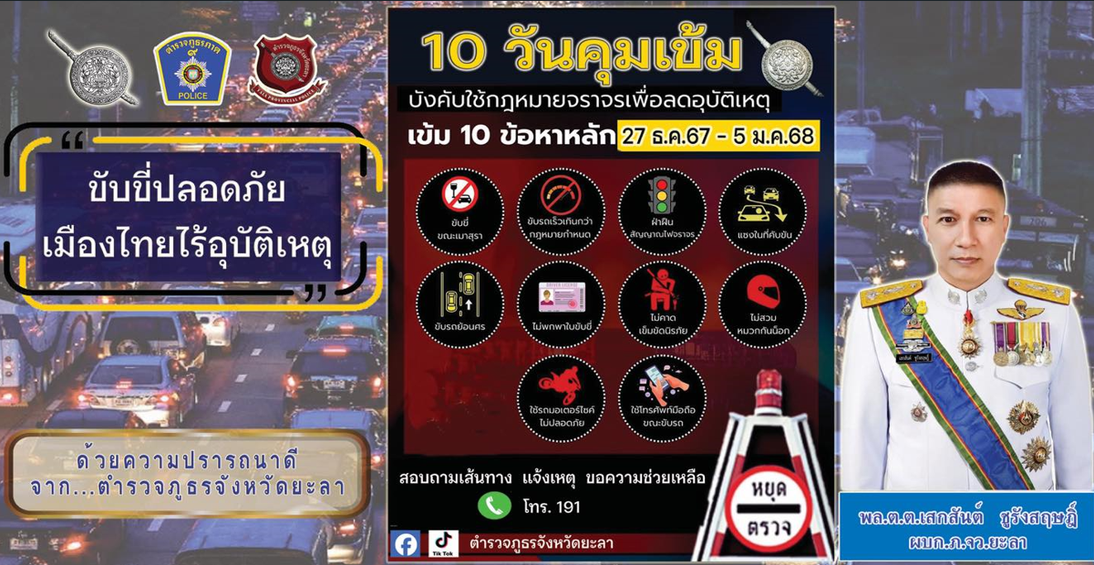 10 วันคุมเข้มบังคับใช้กฎหมายจราจรเพื่อลดอุบัติเหตุ 10 ข้อหาหลัก