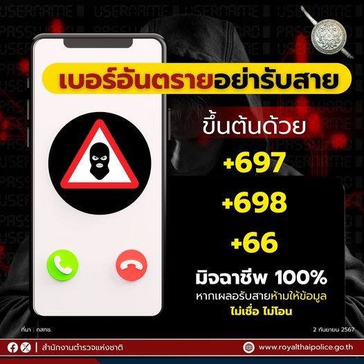 🚨อย่ารับสาย เบอร์อันตราย!! กลับมาระบาดอีกแล้ว เบอร์โทรศัพท์ ขึ้นต้นด้วย +697 +698 หรือ +66 หากมีเบอร