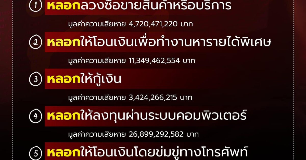 1. หลอกลวงซื้อขายสินค้า หรือบริการ (ไม่เป็นขบวนการ) มูลค่าความเสียหาย 4,720,471,220 บาท