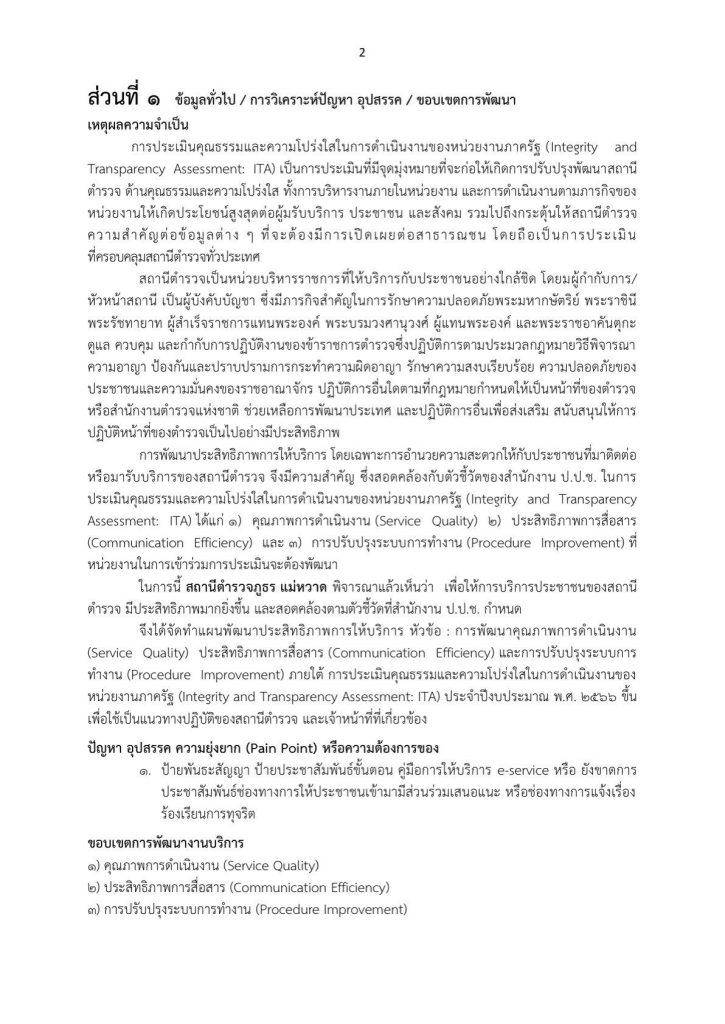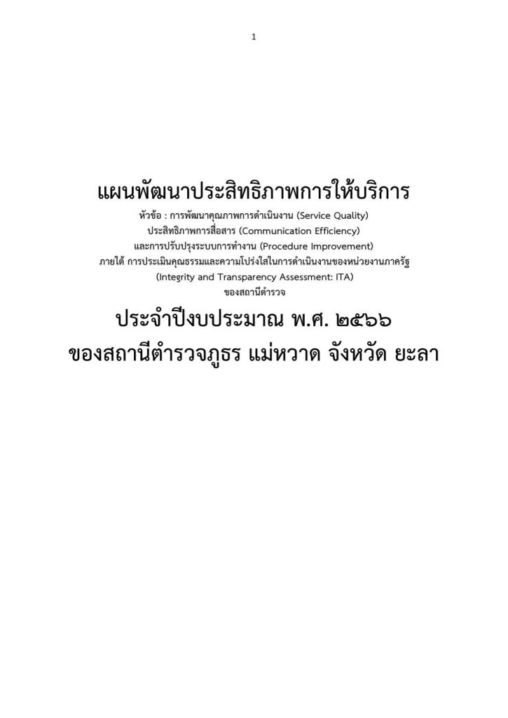 026 แผนพัฒนาประสิทธิภาพการให้บริการและการรายงานผลการดำเนินการตามแผนพัฒนาประสิทธิภาพการให้บริการ
